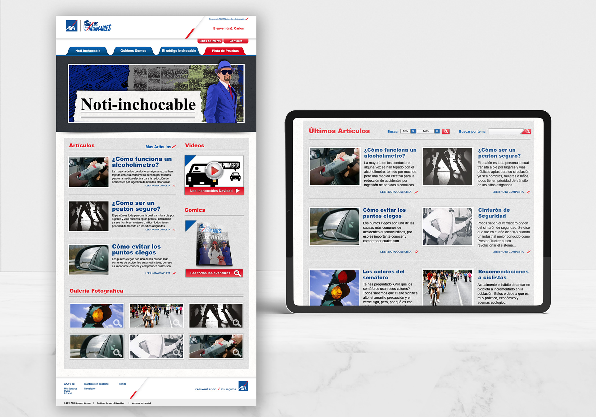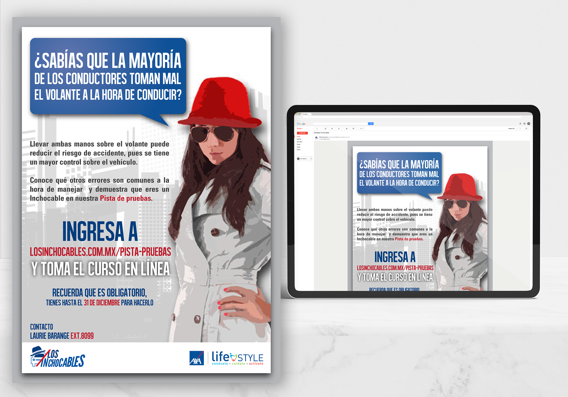 Tuve la oportunidad de participar en el diseño e implementación de un programa interno de educación vial para AXA Seguros. En el marco de este proyecto, diseñé diversos materiales digitales, impresos y audiovisuales, incluyendo una página web, campañas de correo electrónico, videos, así como impresos como periódicos y pósters.